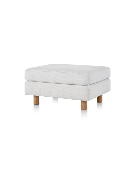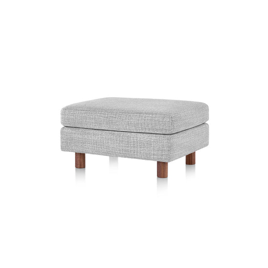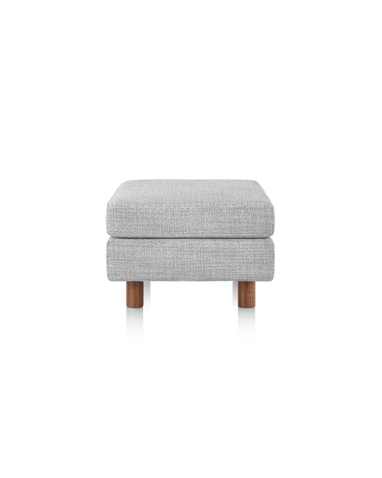The sofa group offers a beautiful proportion with a sit height of 15" and a depth of 23.5". The pieces also feature a depth pitch of 1.25", contributing to the overall feel of lounging and relaxation. The rounded wooden legs offer a quiet, yet contrasting element at 4" in height, and are available in walnut and white oak finishes.