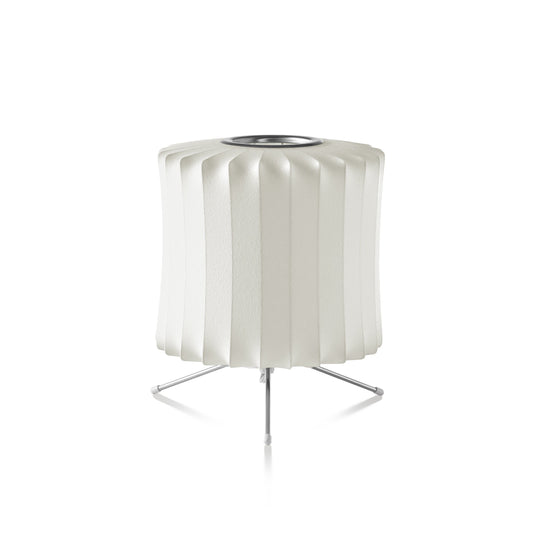A classic George Nelson design, the Lantern Tripod Lamp echoes the shape of a traditional lantern. It is set on a steel tripod that can be kept at various points in an interior, and includes a 7.5-foot plug-in cord.