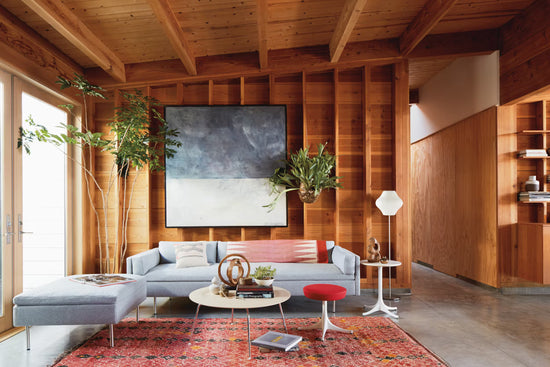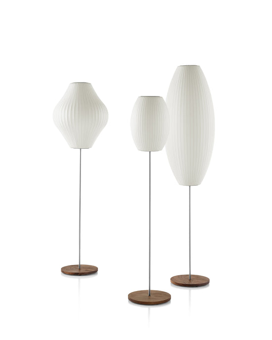 With a beautifully flared lampshade and a stable steel base, the Nelson Pear Lotus Floor Lamp has a tall, sculptural presence. It is available in two sizes to complement interiors of different sizes.