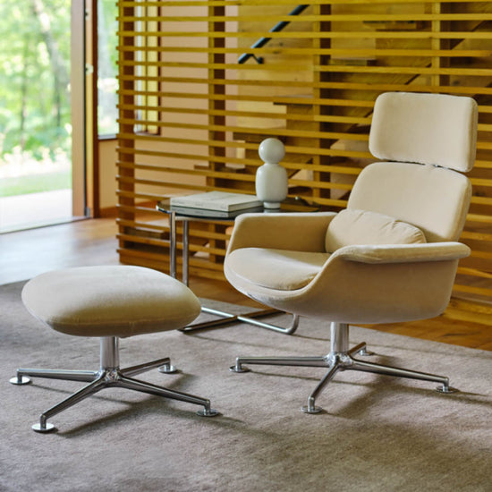 KN03 is an ottoman designed to pair with the KN family of lounge chairs that navigates seamlessly between residential and workplace applications. The collection combines a nuanced sense of proportion with exquisite detailing in Lissoni’s signature refined aesthetic.