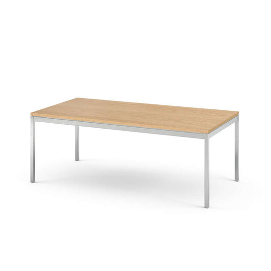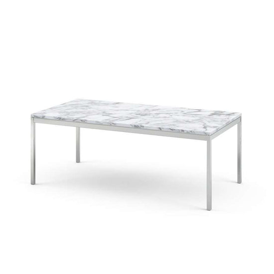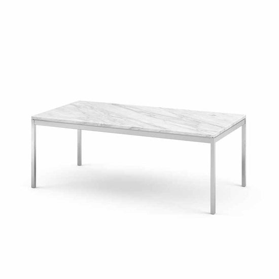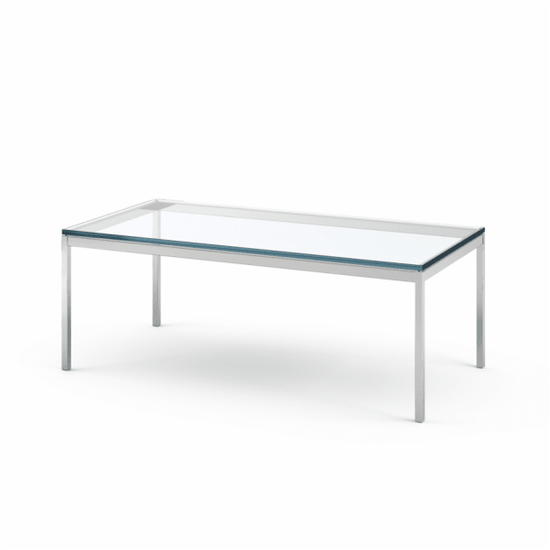 The Florence Knoll Coffee Table, designed to furnish the new interiors of postwar America, is a scaled-down translation of the lines, gestures and materials of modern architecture. Consistent with all of her designs, the table has a spare, geometric presence that reflects the rational design approach Florence Knoll learned from Mies van der Rohe.