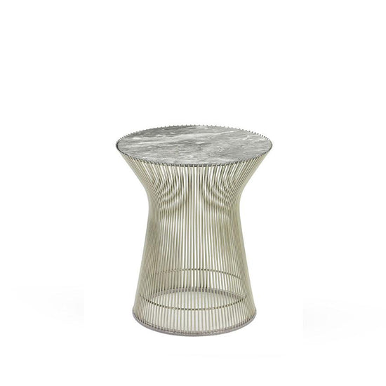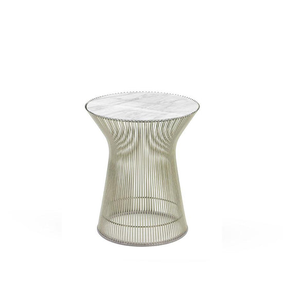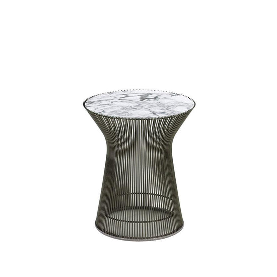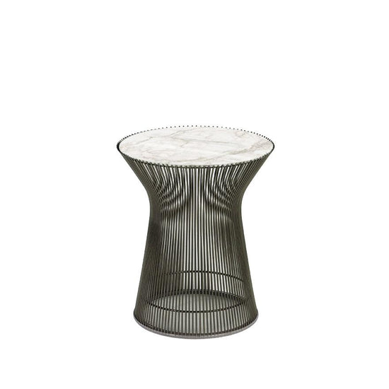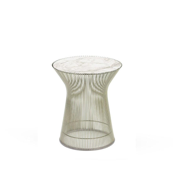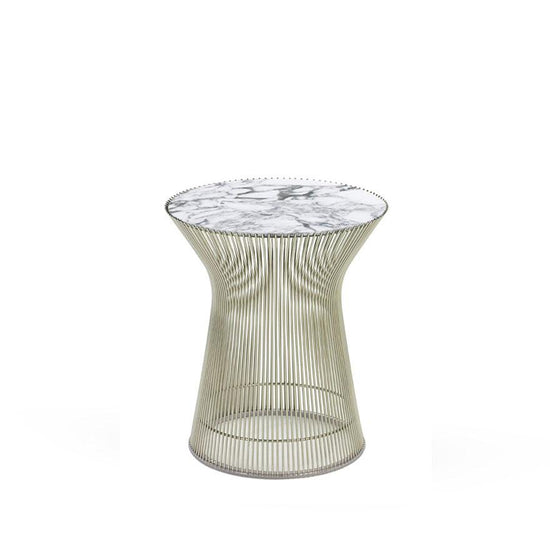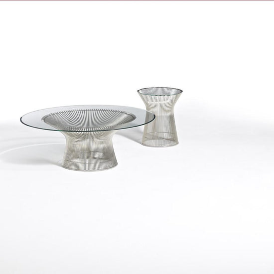 In 1966, the Platner Collection captured the “decorative, gentle, graceful” shapes that were beginning to infiltrate the modern vocabulary. The iconic side table is created by welding curved steel rods to circular frames, simultaneously serving as structure and ornament.