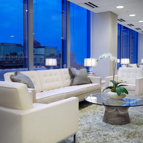In 1966, the Platner Collection captured the "decorative, gentle, graceful" shapes that were beginning to infiltrate the modern vocabulary. The iconic coffee table, which creates a focal point in any modern living room, is created by welding hundreds of curved steel rods to circular frames, simultaneously serving as structure and ornament.