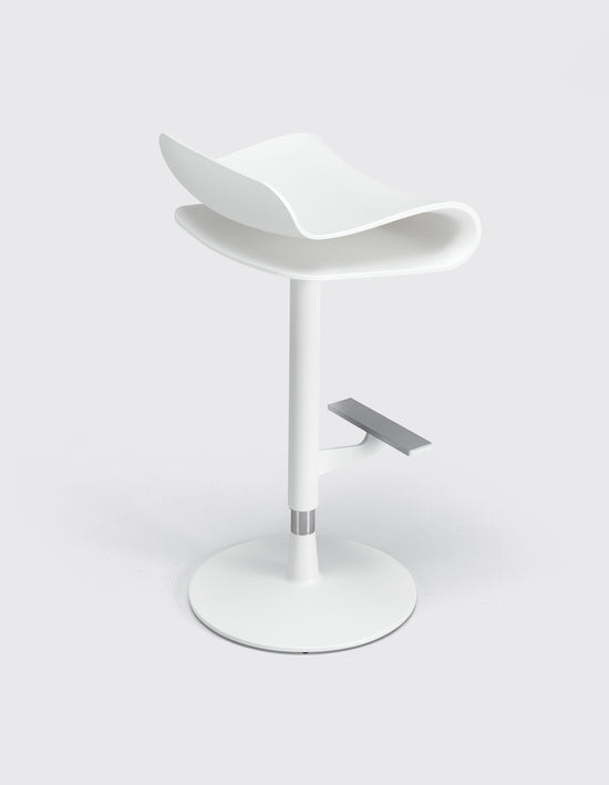 This led to one of our iconic products, a stool that is now available in various versions: high, medium or low with a slide-frame base, with beech wood legs or with a height-adjustable structure. The seat and the bases are available in a variety of colours.