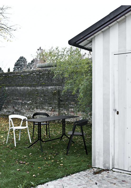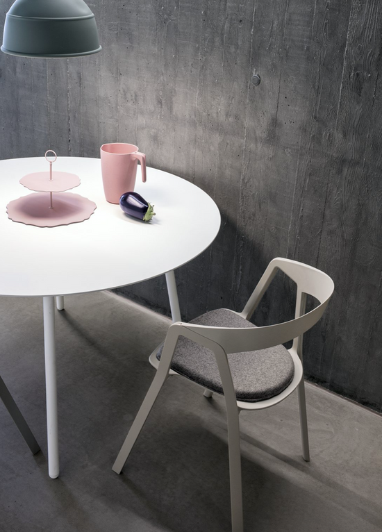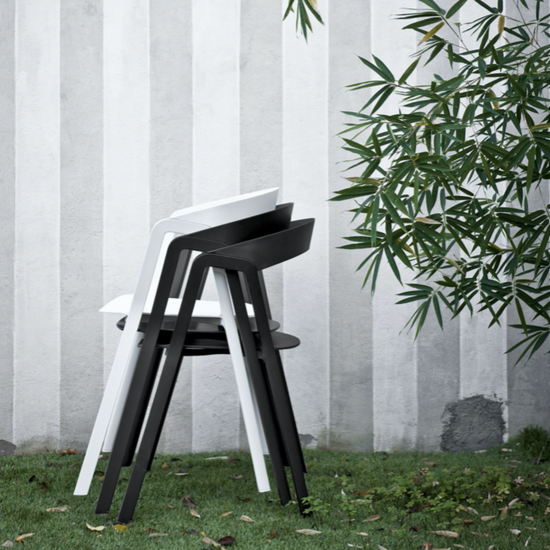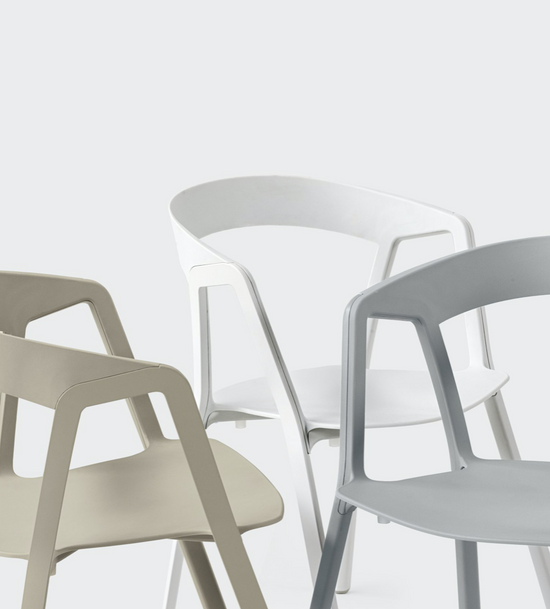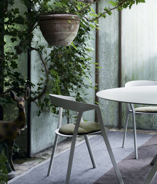 Research into materials is one of the driving forces behind the creativity of Patrick Norguet, who successfully combines innovation with elegance in the Compas chair. Its seat is made of PA6, a hardwearing and durable plastic material. The legs, featuring an inverted V-shaped tilt reminiscent of the rods of a compass, are made of die-cast aluminium and are powder-coated in the same colour as the seat.