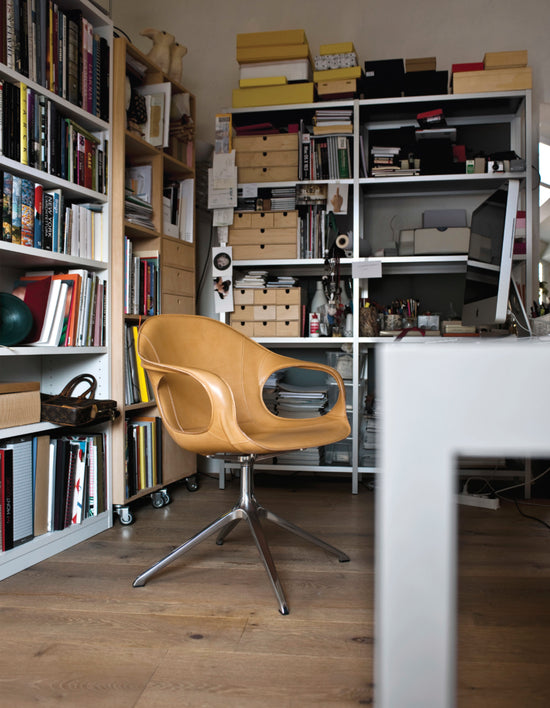 Starting from a very simple frame, Eva Paster and Michael Geldmacher of Neuland created an extremely innovative project that received an Interior Innovation Award in 2012. The key to the success of this best-selling armchair is its versatility, which allows it to evolve almost continuously, not to mention the high-quality tailored workmanship of the upholstery.