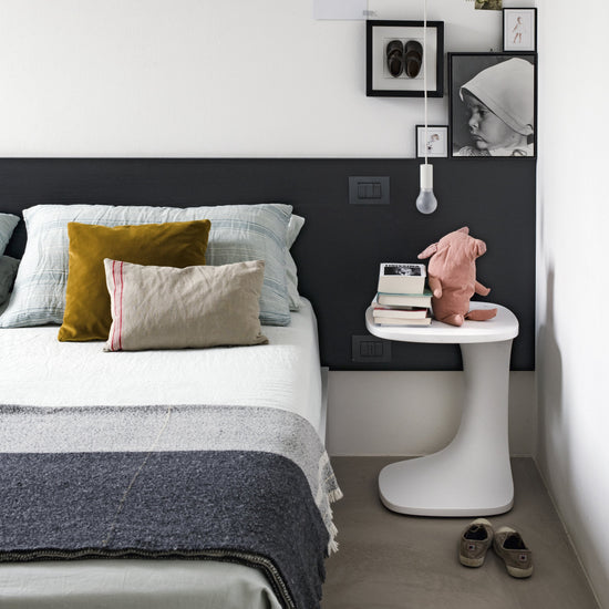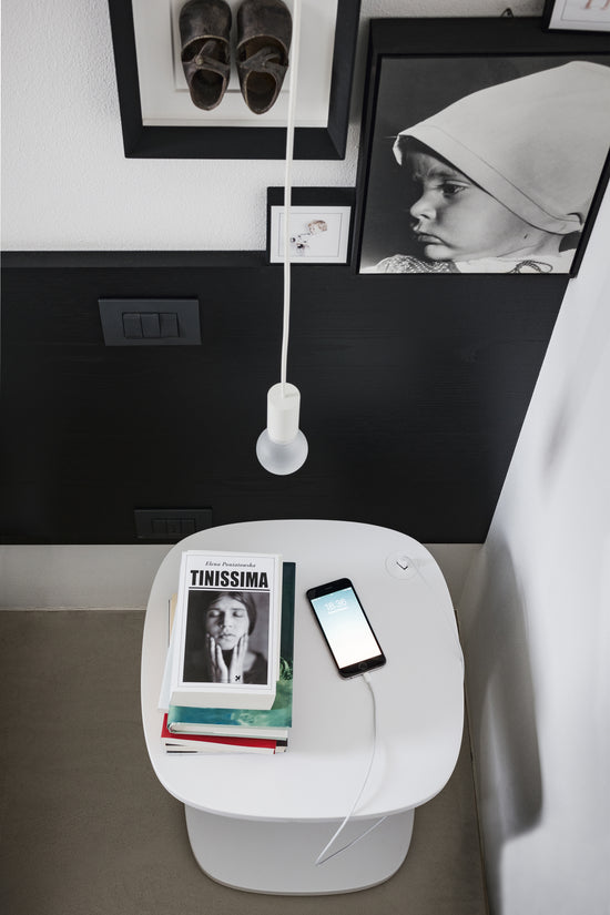 “Font” is an English word used in typography to define a series of characters that share a certain graphic style.The new occasional table, designed by the Swedes Claesson Koivisto Rune and inspired by a typographic character, becomes a service table when positioned next to a sofa or a bedside table when next to a bed.
