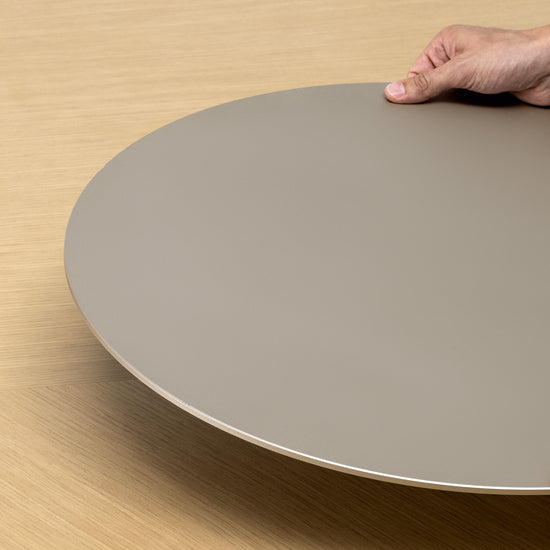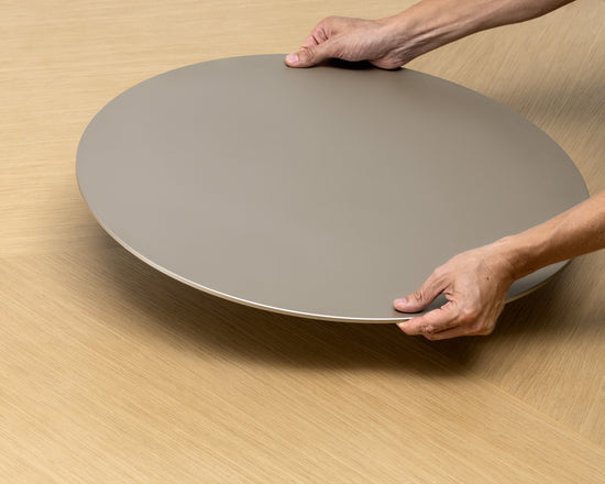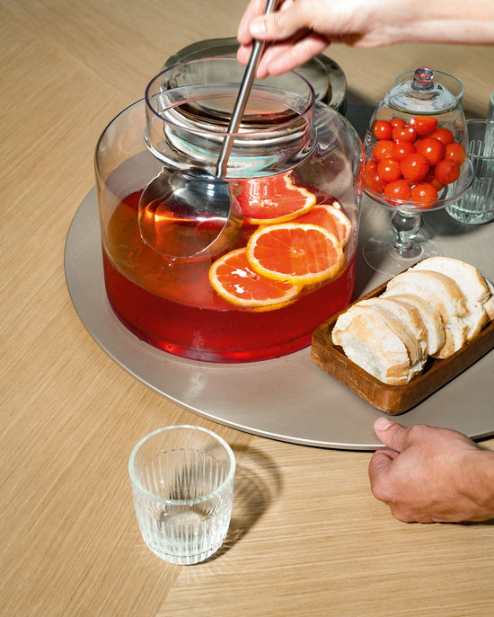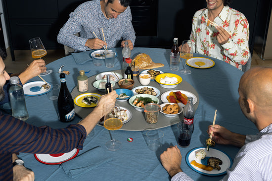 Now, the Kristalia Bluezone research lab has re-interpreted it with a minimalist twist, allowing it to combine both fluid movement with an ultra-contemporary appearance. Available in two sizes and various finishes, including the new “Exclusive colours”, Lazy Susan can be used on a tabletop. It is easy to remove and re-position even on a tablecloth.