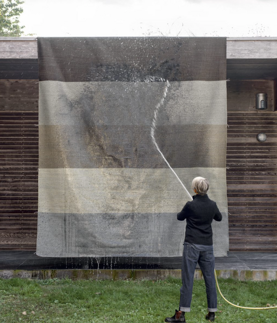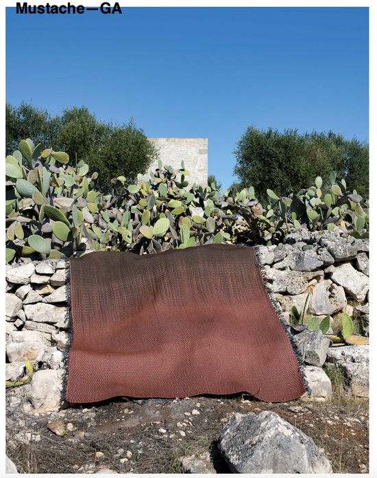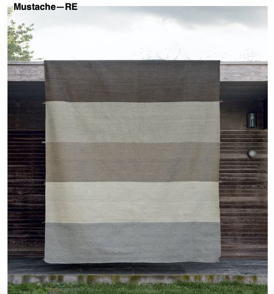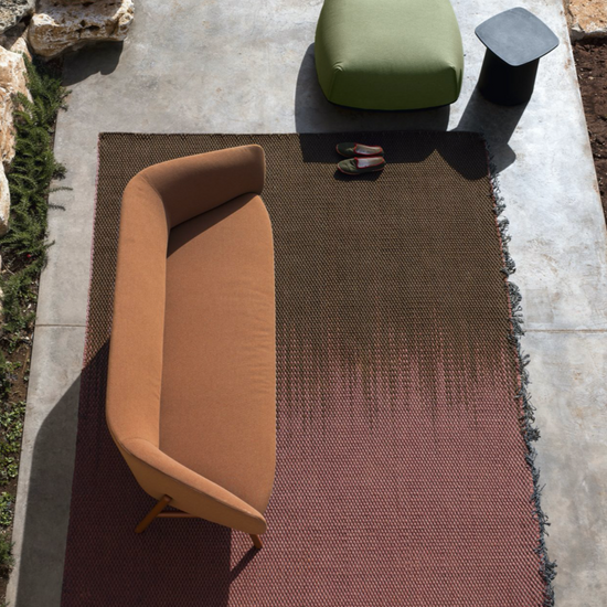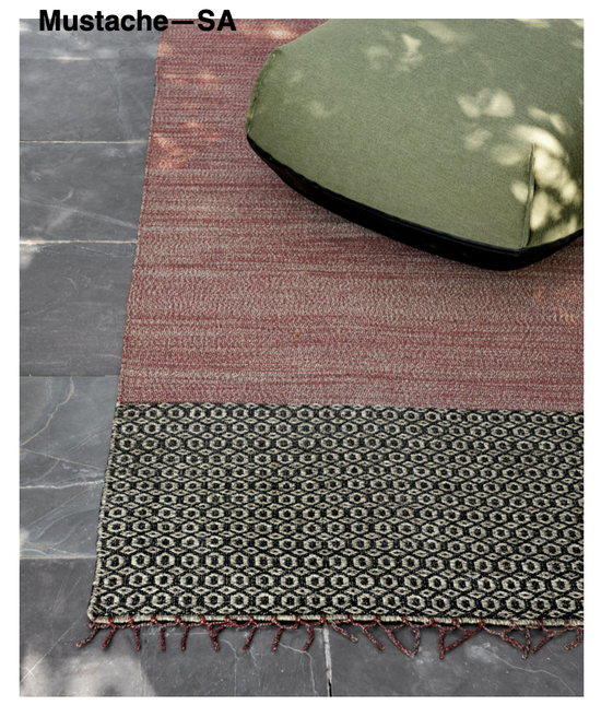 Mustache is a collection of carpets designed by Paolo Zani. Created to meet the needs of outdoor spaces, it has evolved into a range of versatile furnishing accessories ideal for any space. Featuring a melange weave with edge trims in different colours and fringes, the carpets are weaved on handlooms: such fine craftsmanship and tailored quality makes each one of them unique.