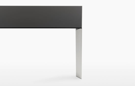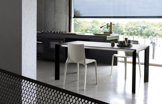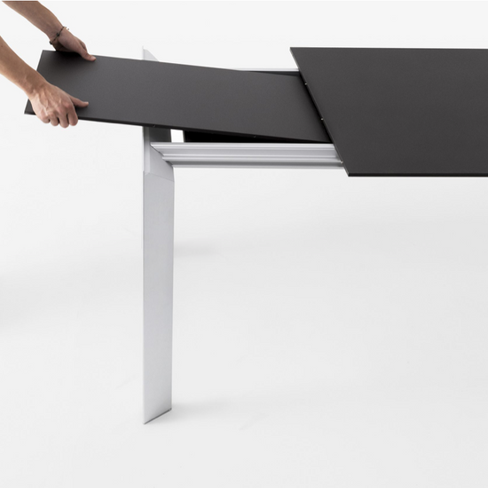 An evolution of Sushi, Nori is also a fixed or extendable table available in a wide range of sizes and finishes. But Nori has a different design for its legs, which have a sharp cross-section that gives them a more dynamic look.