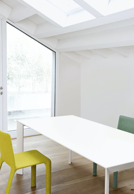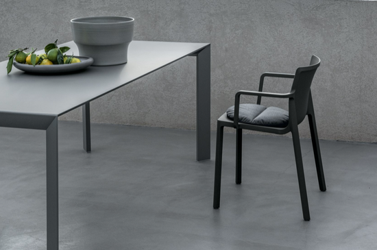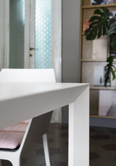 The top, made of cutting-edge materials such as Alucompact® and Pure-white laminates, Fenix-NTM®, DEKTON® by Cosentino, and gloss or matt glass, is narrow yet highly resistant. Thanks to the quality design project and the complex technology used, Nori tables are also available in large sizes without losing their lightness and stability.
