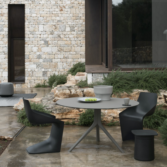 In 2016, the collection was extended: the Oops I Did It Again range now includes two fixed tables with a round top and a fixed table with a rectangular top, available in different sizes. The legs are made of die-cast aluminium with a brushed or powder-coated lacquer finish. They can be combined as required with a top in laminate, Fenix-NTM® or wood veneer.