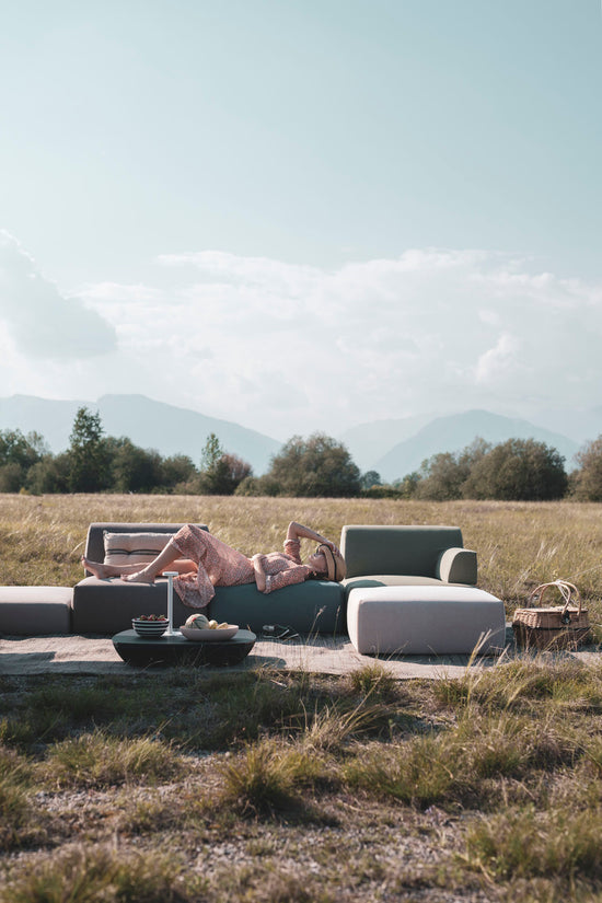 The Palchetto upholstered outdoor seating system is inspired by the architectural elements found in Italian—style theatres, the boxes or “palchetti” where spectators take their seats to watch performances. Consisting of one or more upholstered elements, which can be used alone or combined to create different configurations, Palchetto features a quick coupling and release system between the various modules, which can then be arranged as desired. The seating is soft and comfortable with a memory foam seat and backrest with elastic straps, which echoes the same shapes as Palco, an upholstered outdoor seating system where the seats rest on a platform, and with which Palchetto can be combined.
