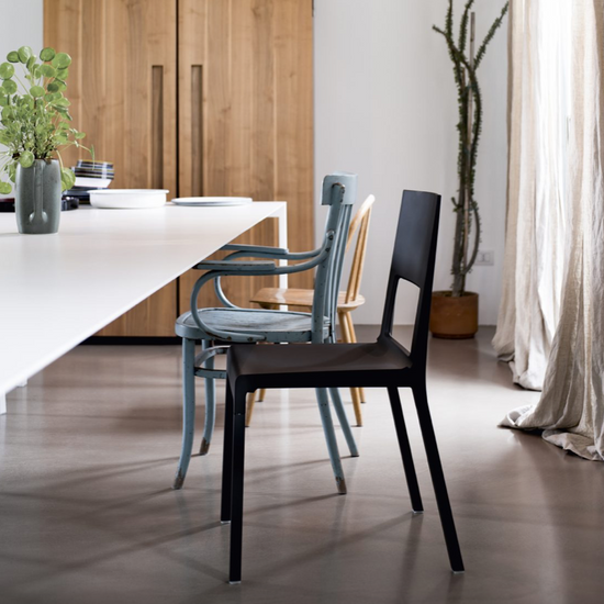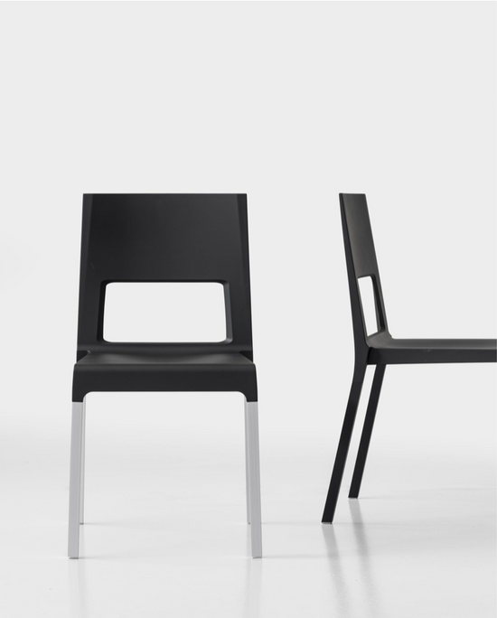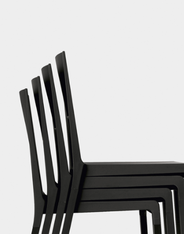 Developed in collaboration with designer Luca Nichetto, the Face chair is comfortable and sturdy. It is made of polyurethane with a reinforced structure to ensure resistance to stress and the flexibility of the backrest. The backrest itself – flexible, adaptable to the body and slightly higher than average – is the element that makes the seat comfortable. The large hole makes it easier to grip the chair, which is stackable: combined with its highly distinctive design, such features make it ideal for community environments and for the home.