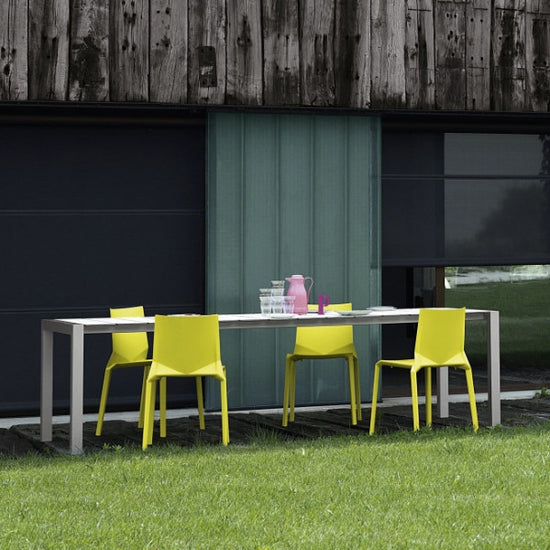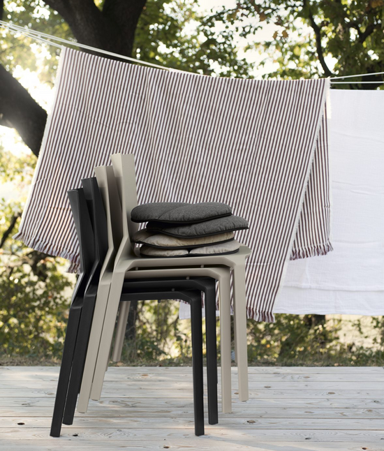 Hardwearing, versatile and affordable, Plana is a chair for all occasions. Designed by LucidiPevere, it is made of injection-moulded polypropylene reinforced with glass. Its lightness and colour make it the ideal chair for home spaces, whereas the removable cap in the seat for water drainage and the fact that it can be stacked, up to ten items, make it ideal for outdoor use. Plana is even more comfortable in the slightly padded version, with upholstery in synthetic leather or fabric, or combined with the Lips cushion.