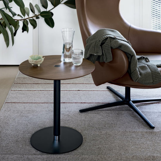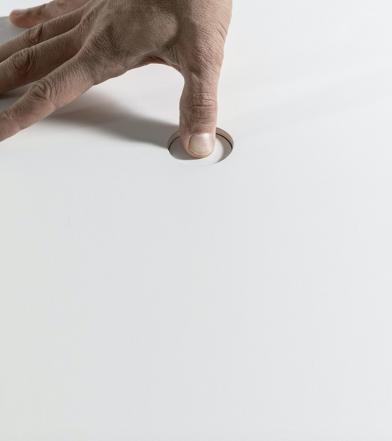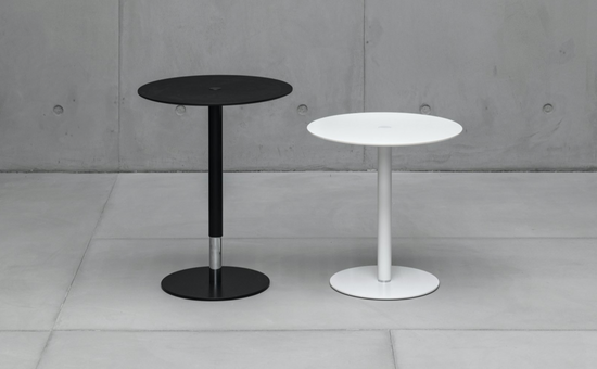 The name says it all (Push the Button): just press the button in the centre of the top to adjust the height of this occasional table. Ideal next to a sofa, it has a round top and base, held together by a central column that conceals a gas mechanism. This furnishing accessory is simple, minimalist and functional.