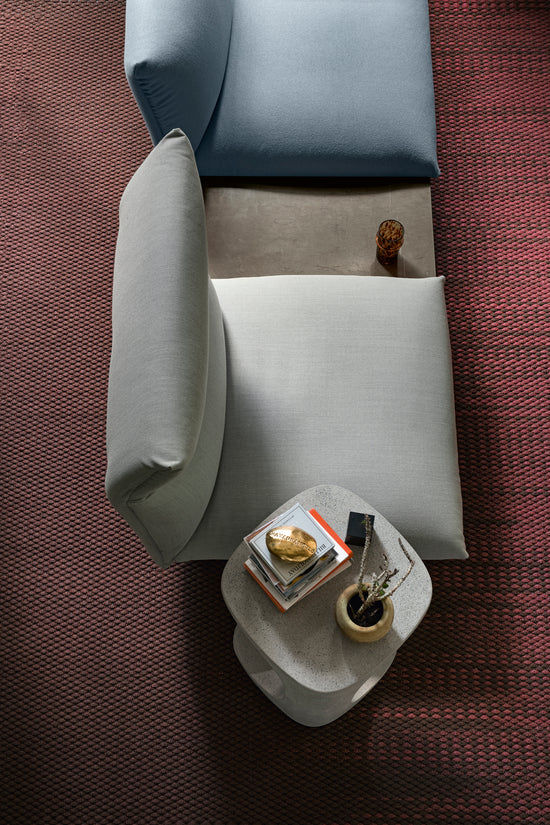 Designed by Luca Nichetto, Tenso is a system comprising padded items inspired by tensile structures. The core of the system is its frame, a light and sturdy tubular structure to which the various elements are fixed – seats, backrests, cushions and tabletops, between which a tension is created that keeps the various parts suspended and open, like a welcoming embrace.