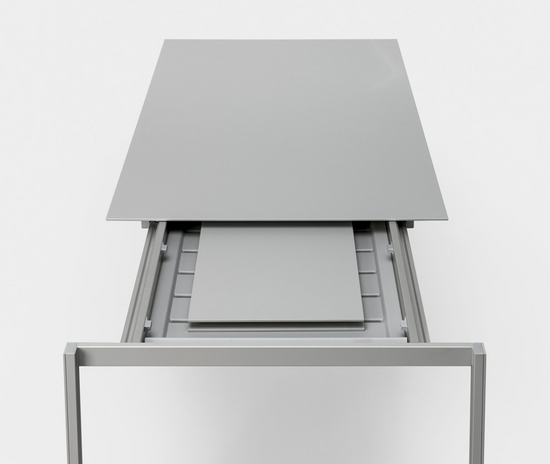 Thin-K can be considered more of a technological and formal challenge than a table. At the limits of sheer minimalism, the top of Thin-K is just 6mm thick and can extend to considerable lengths without losing its linearity and sturdiness. It is narrow enough to appear suspended in the air.