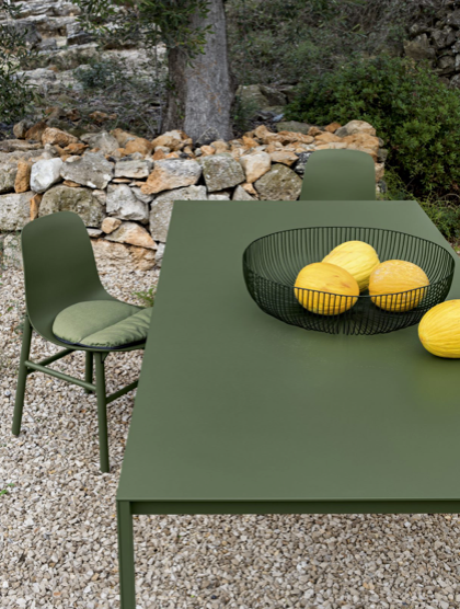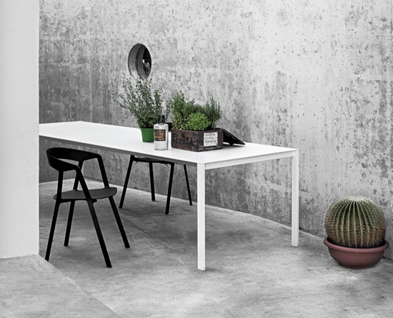 The textured finish of the aluminium top makes it smooth and pleasant to the touch. Fixed or extendable, the Thin-K table is available in various colours.