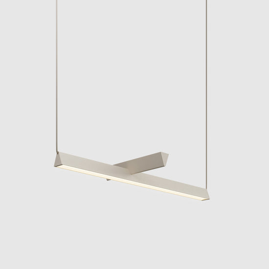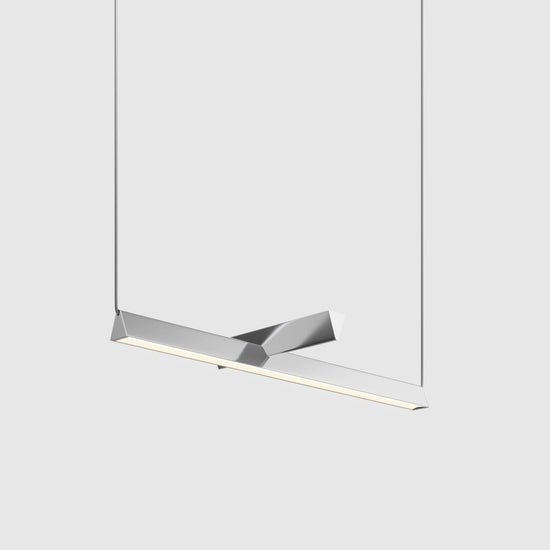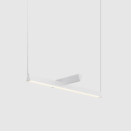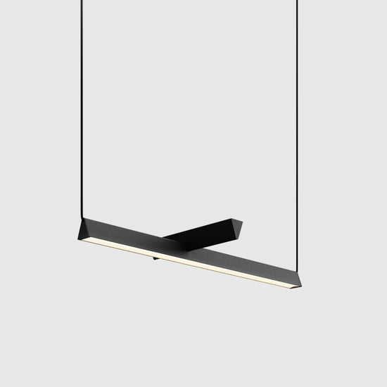 The Mile Collection offers a variation on the linear suspension—pared down to its asymmetrical expression— with two lines floating in surprising equilibrium. A play on contrasts, the 90° pivot marks out space with direct and indirect LED light.