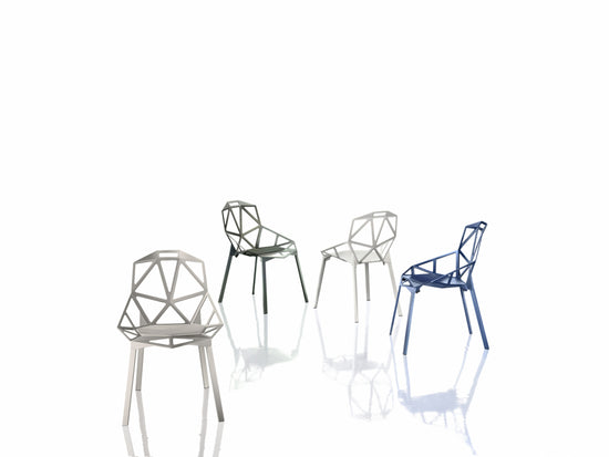 Konstantin Grcic wanted Chair_One to be more open space than solid, so he modeled it on a soccer ball—a collection of small, flat planes assembled at angles to create a three-dimensional form. His goal was to combine comfort with structure.