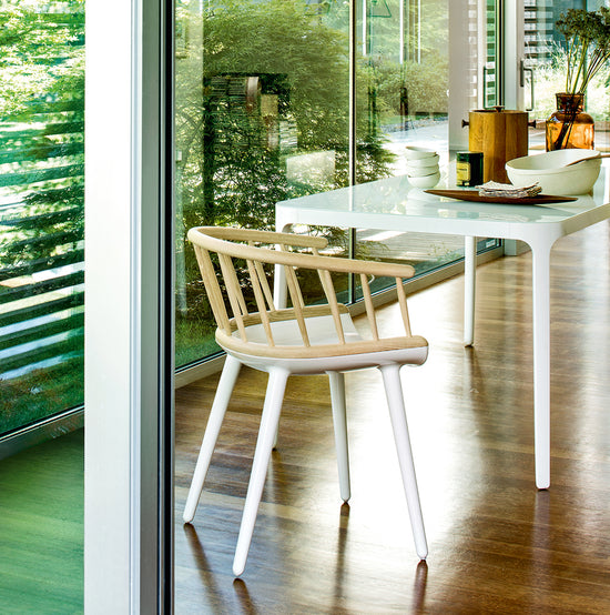 This is the background to the creation of Cyborg, a seat with a highly resistant and versatile polycarbonate shell. The seat can then be completed with backrests in a selection of different natural or synthetic materials: from polycarbonate to wicker, from solid wood to plywood, to the most recent upholstered versions with fabric or leather cover. This further evolution of the chair is in equal parts poetic and technological, cosy and surprising, in keeping with the widest range of different settings.