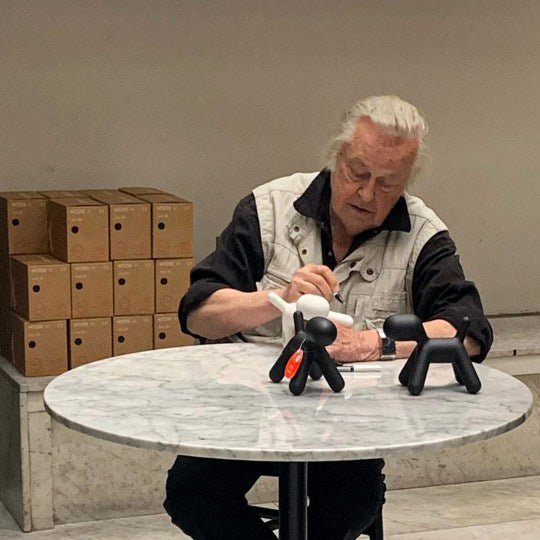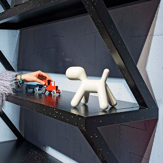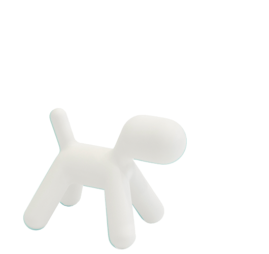 The vivid color, organic form, and playful spirit of Puppy are all characteristic of creations by Finnish designer Eero Aarnio. Imaginative and innovative, his abstract plastic dog for Magis Me Too blends function and delight, finding use both inside and out as a fun object, or simply as sculpture.
