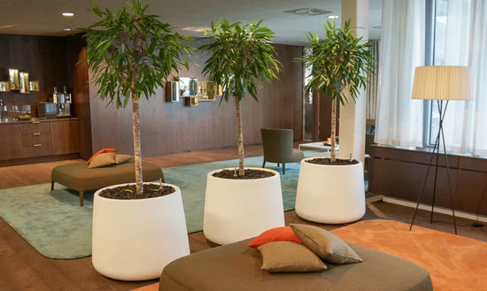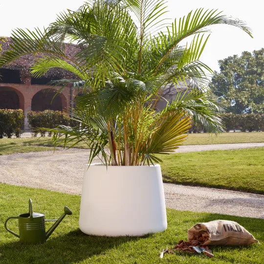 Material: rotational-moulded polyethylene. Suitable for outdoor use. Supplied with wheels for some versions. Available in four dimensions
