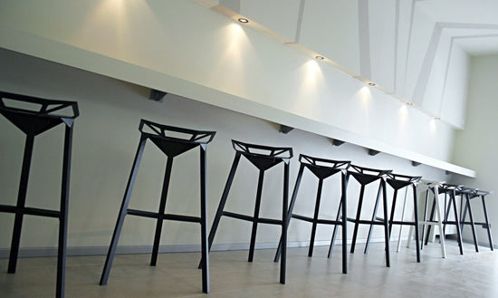 Molded from die-cast aluminum and constructed like a soccer ball, Konstantin Grcic’s stackable and unexpectedly comfortable stool was designed to be more open space than solid. Available in 2 sizes and a choice of finishes, its striking, sculptural form garners attention in both casual and formal environments. Sold in sets of 2.