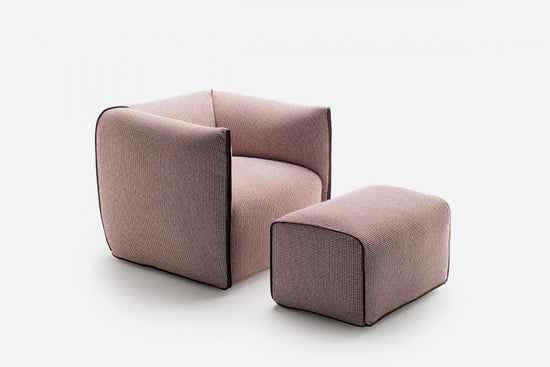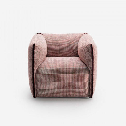 A compact, soft, comfortable armchair with a strong personality has joined the MDF Italia collection. The Mia soft design comes from the simple gesture of folding a cushion to create a nest - a shelter for relaxing moments. Mia collection is characterized by a soft compact armchair, sofas and pouf, with a strong character enhanced by its tone-on-tone or contrasting trim. The armchair is available with a fixed or with a 360° returning swivel base. The sofas, are integrating the collection offering three upholstered elements with smaller dimensions matching any ambient.