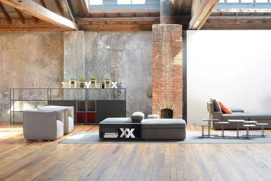 The Mia collection is characterized by an extrathick decorative trim which emphasizes its sinuosity by tracing its edges and intersections. The trim can be in the same tone of the cover, or in a contrast colour based on the customers’ choice. The fabric cover embraces the entire product and is tailored to enhance its shape and softness.