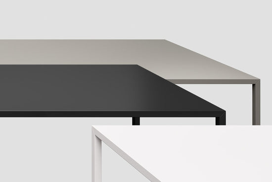 • Finishes: matt white lacquer with tables in matt white, or matt black lacquer with tables in black and medium grey.