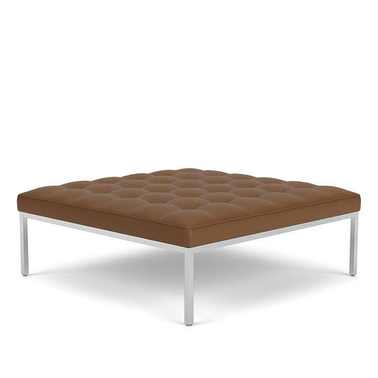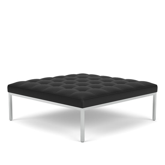 Used as a bench, ottoman or coffee table, this unique bench brings a softer sit and new size to the Florence Knoll Lounge Collection. Consistent with all of her designs, the square bench has a spare, geometric profile that reflects the objective perfectionism and rational design approach Florence Knoll learned from her mentor, Mies van der Rohe.