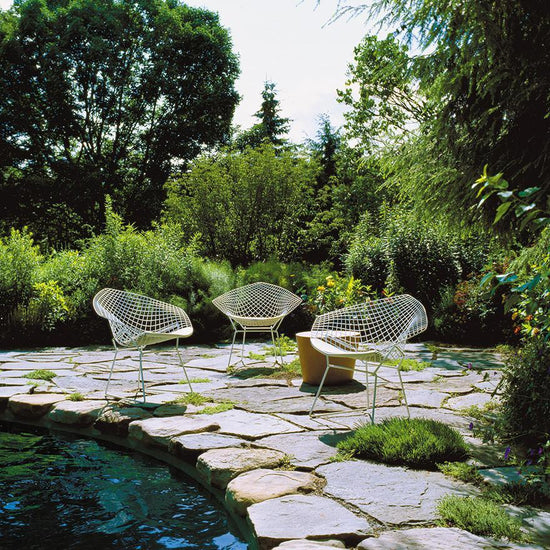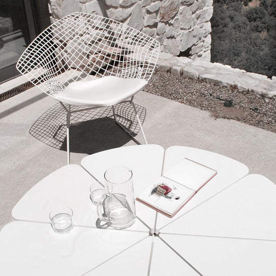 The Diamond Chair is an astounding study in space, form and function by one of the master sculptors of the last century. Like Saarinen and Mies, Bertoia found sublime grace in an industrial material, elevating it beyond its normal utility into a work of art. Harry Bertoia’s wire chairs are among the most recognized achievements of mid-century modern design and a proud part of the Knoll heritage.