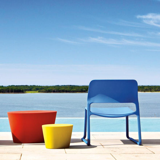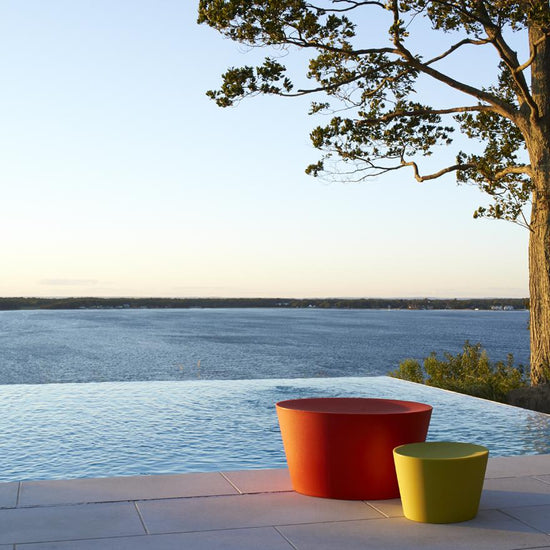 Maya Lin’s collection of Stones, introduced in 1998 in celebration of Knoll’s 60th anniversary, reflects the famed architect’s signature subtlety. Used as either stools or side tables, the stones are a colorful addition to the playroom or patio.