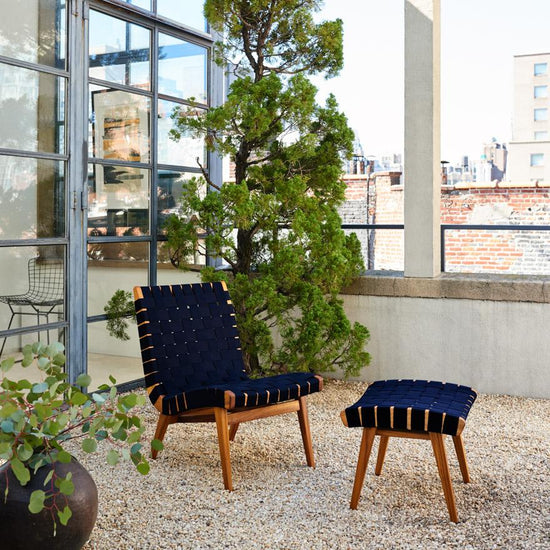 Described as good, honest furniture design, the Risom Collection helped establish Knoll as an early source of modern design in America. Three-quarters of a century later, selected products from the original collection have been re-engineered for outdoor use. Oiled teak frames and Sunbrella® webbing ready these classics for a life outside.