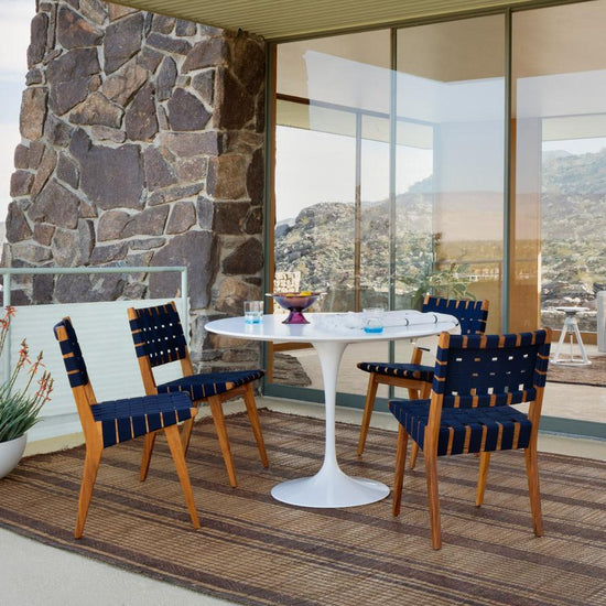 With the Pedestal Collection, Eero Saarinen resolved the "ugly, confusing, unrestful world" underneath tables and chairs. The collection is a defining accomplishment of modern design. All-weather hardware and an engineered stone top ready the classic Saarinen table for a life outside—a modern focal point for any outdoor setting.