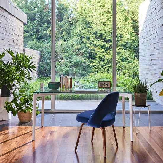 The Stromborg Table Collection, designed for indoor or outdoor use, offers clean lines and a broad palette of top materials and paint finishes that complement any environment. The signature X- and Y-shaped aluminum rails are offered in bright colors for a subtle but energetic accent.