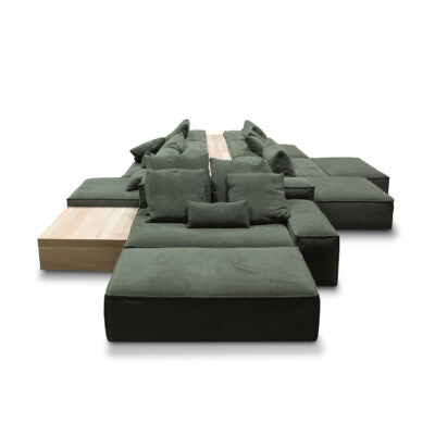Designed for both small and large spaces, this lounge product line offers unique modularity and versatility. Each piece is built with a kiln-dried hardwood frame for strength and high-density foam for comfort. Seats are built on rubber webbing for unrivalled stability.