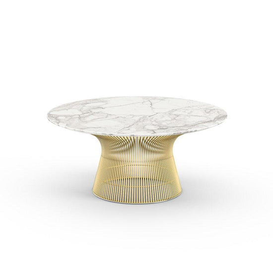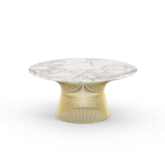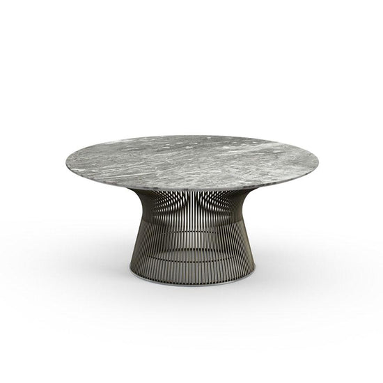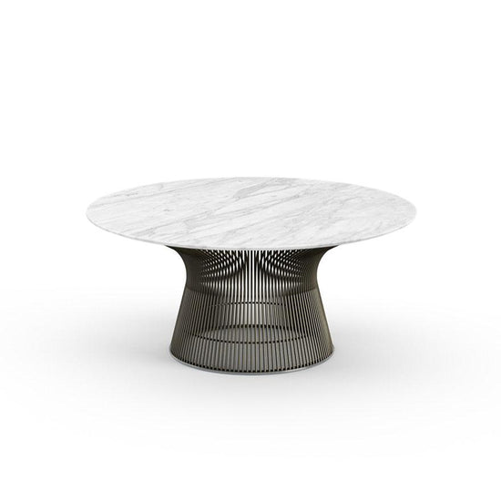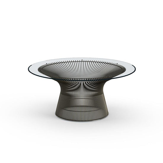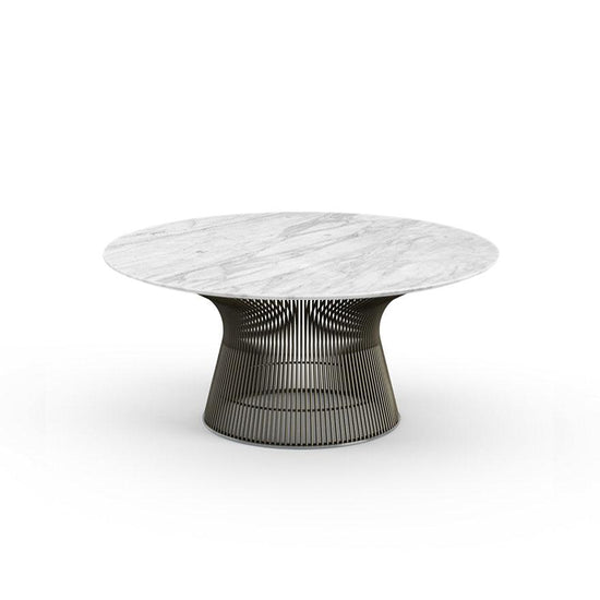 In 1966, the Platner Collection captured the "decorative, gentle, graceful" shapes that were beginning to infiltrate the modern vocabulary. The iconic coffee table, which creates a focal point in any modern living room, is created by welding hundreds of curved steel rods to circular frames, simultaneously serving as structure and ornament.