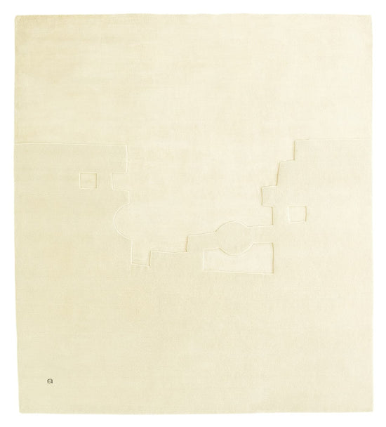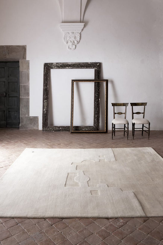 Chillida’s artistic nuances have been faithfully translated into rugs, all handmade using various techniques and fibres, such as wool, silk, and hand-spun mohair, to create different textures, showcasing the essence of his work.