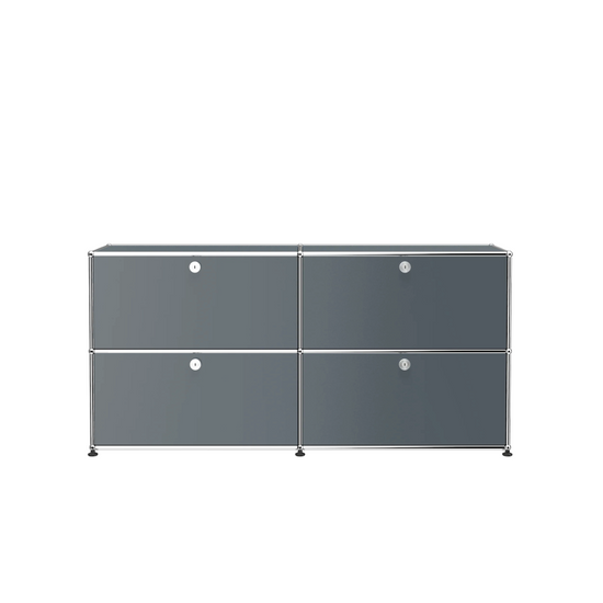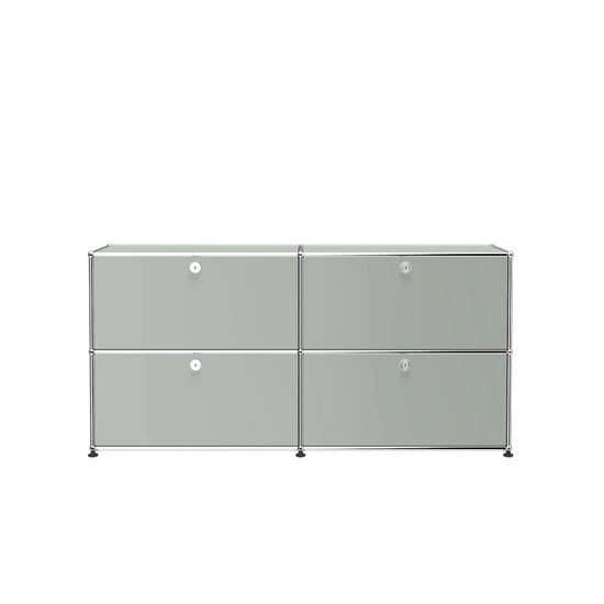 A timeless and versatile storage credenza with four drop-down doors that lock with the twist of a coin. Available in 14 standard surface colours.