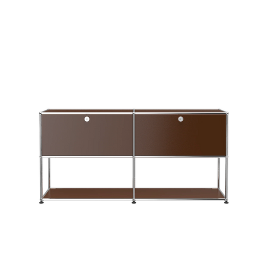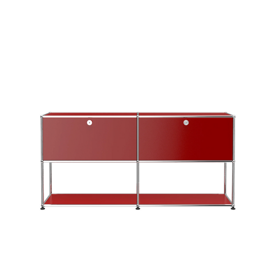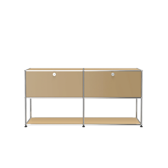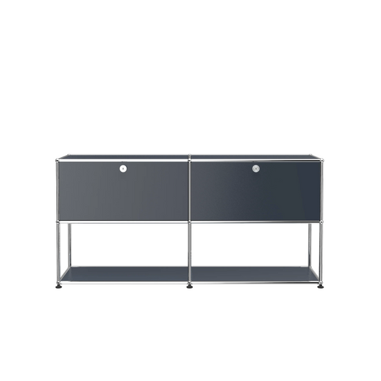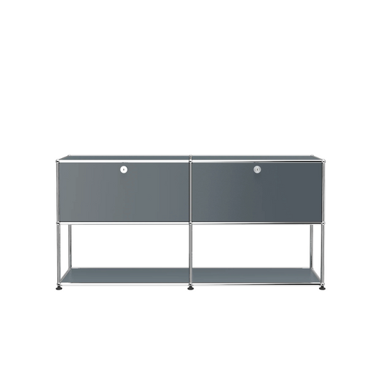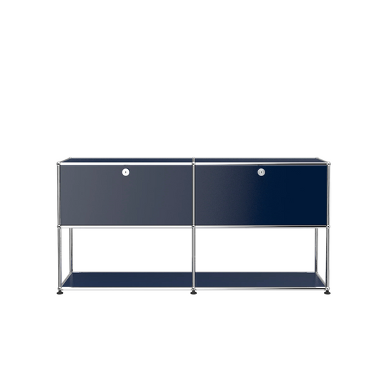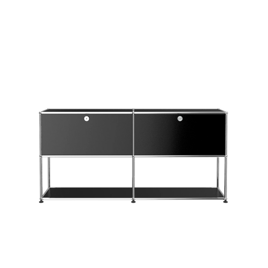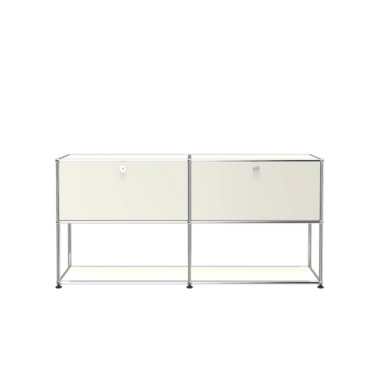 A versatile storage credenza with two drop-down doors that lock with the twist of a coin. Available in 14 standard surface colours.