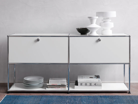 Designed by Swiss architects Fritz Haller and Paul Schaerer in 1963. Made from powder-coated steel and chrome-plated steel tubes, the USM Haller system is built to last for generations and adapt as your needs change. Made in Switzerland.