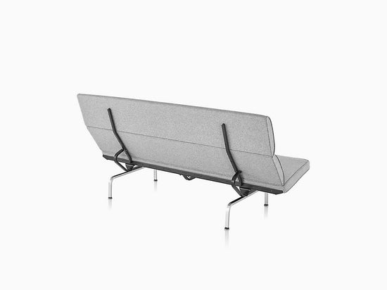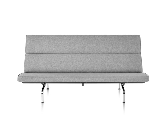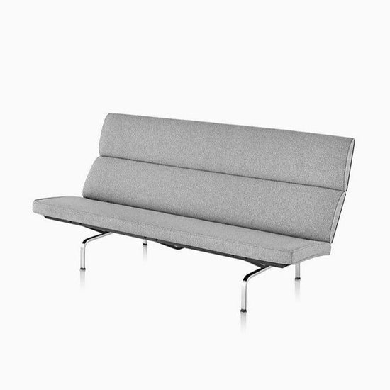 Inspired by a built-in that designers Charles and Ray Eames created for their home in Pacific Palisades, California, the Eames Sofa Compact (1954) sits on an airy pedestal of chromed-steel legs. With plush foam cushions supported by resilient webbing, it offers firm but flexible support from shoulders to knees. This modern compact sofa is an authentic Eames product by Herman Miller.