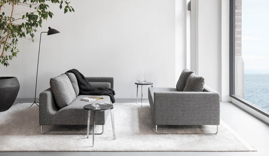 Canyon has a characteristic seat-scoop that holds cushions and bolsters in place. With its sled legs and clean lines, Canyon is perfect for home or contract use.