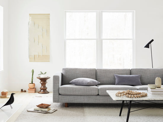 With its classic silhouette and boxy, elemental form, Lispenard Sofa Group is just right in all the right ways for a variety of needs and spaces. It’s stylish but not imposing, quiet but up for anchoring any space. It also offers the right support—the angled back affords just the right pitch. Without feeling overstuffed, its comfortable proportions deliver the plush softness you’d expect from casual lounge seating.