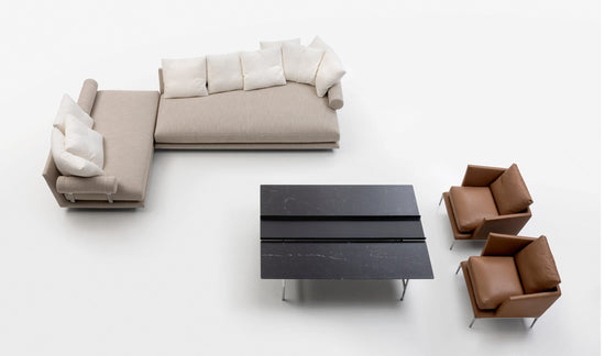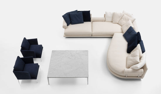 The Noonu collection works in harmony with B&B Italia’s previous collections to form a fully-fledged archipelago of options, where the unique character that distinguishes each individual element does its part in telling a cohesive story. “The theme of islands started back in the mid-‘80s,” says architect Antonio Citterio, “when we invented a selection of new types with the Sity line. We started referring to sofas with ‘peninsulas’ and ‘islands’, but that sort of terminology was, at the time, somewhat unusual. Nowadays, they’re part of our everyday vocabulary”. Today, that pioneering intuition has been transformed into an organic vision in which Noonu is offering itself as a port, a starting point from which to cast off and explore new territory.