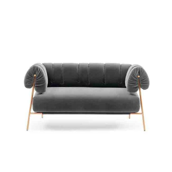 “extras” take on the leading role, “embracing” the metal frame at the armrests and backrest. Thanks to its small size, Tirella sofa is suitable not only for living spaces, but is perfect also for public environments and areas intended for welcoming.
