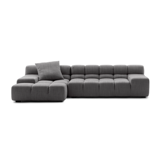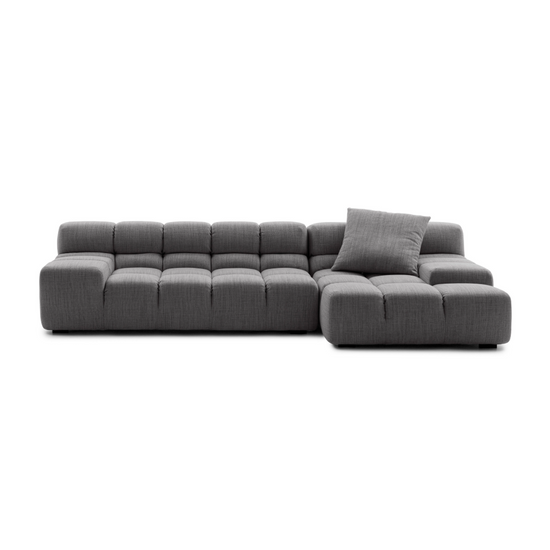 The Tufty-Time modular sofa can be ordered in endless configurations and upholstered with the entire B&B Italia textile and leather range, offering countless options.